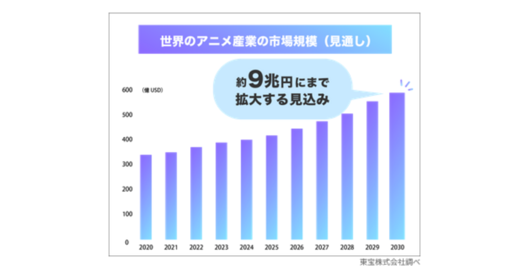 アニメ産業の市場規模は近年急速に成長していて特に世界的に人気があります。